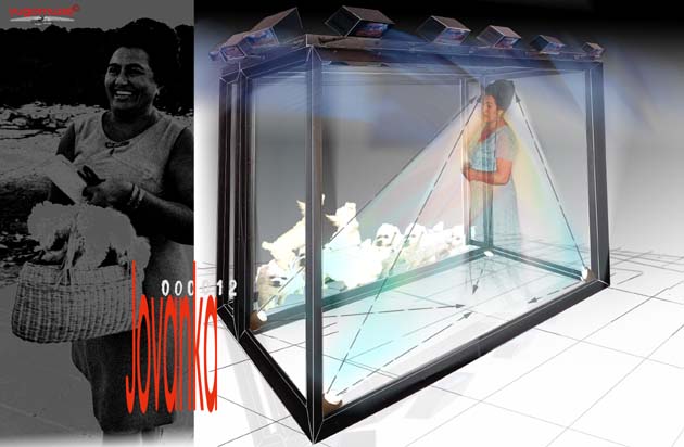 Gvozdje, staklo, sesnaest monitora sa intervjuom: "J.Broz/Moj zivot" 240min, sesnaest belih pudlica.